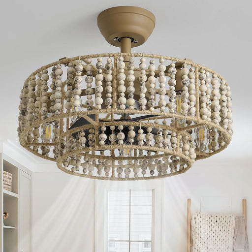 View full detailsBring the outdoors indoors with this flush mount boho ceiling fan with light, inspired by rustic forest charm. Featuring intricate wood beading and...