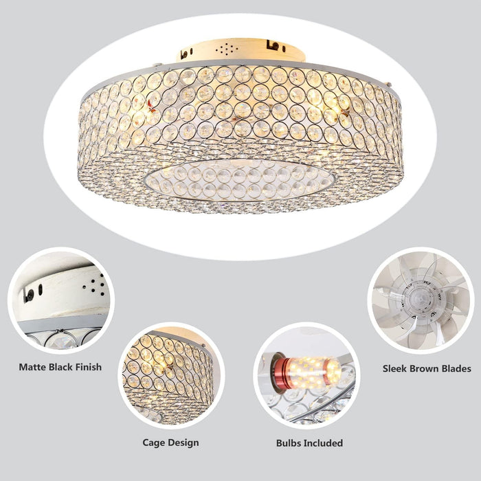 20 in. Modern Luxury Ceiling Fans with Lights, Crystal Enclosed Caged Ceiling Fandelier, Living Room Fan