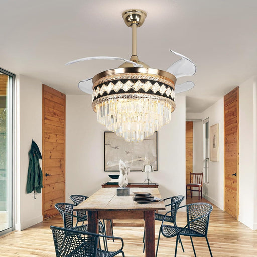 View full detailsThis 42 in. fandelier combines a traditional ceiling fan with a modern crystal chandelier, featuring retractable acrylic blades, K9 clear crystals,...